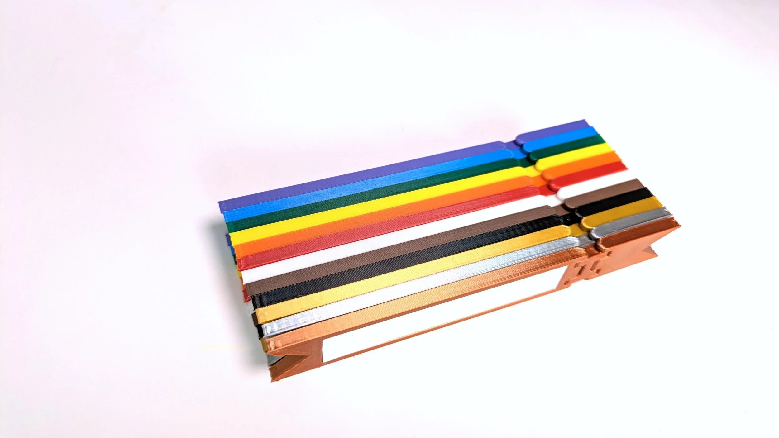 12 uniquely colored flags (purple, blue, green, yellow, orange, red, white, brown, black, gold, silver, bronze)