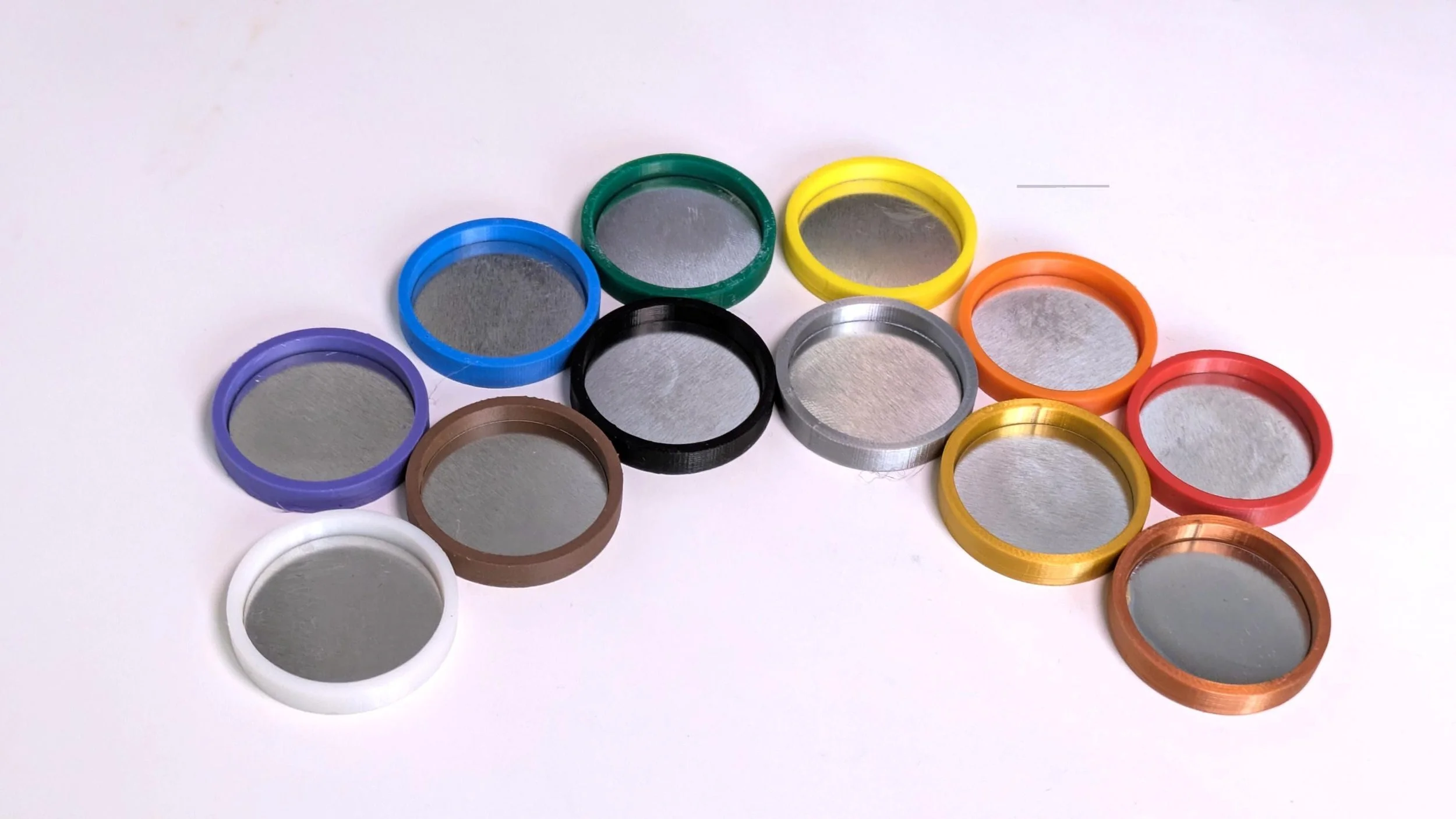 Each base matches the color of a flag and has a small steel disc inserted. Just add one of the included round magnets to the bottom of your mini bases and then swap them in and out of the bases.