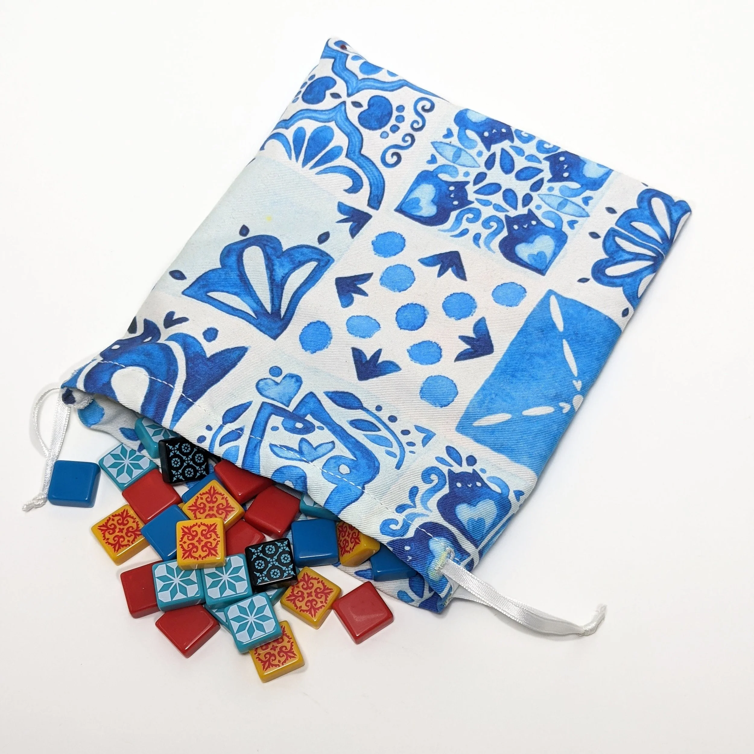 In Azul, tiles are drawn from a bag and placed on factories where players can choose tiles to fill their player board. According to the rules, used tiles are placed in the game's box top at the end of each round. But why use the box top when you can use another bag?