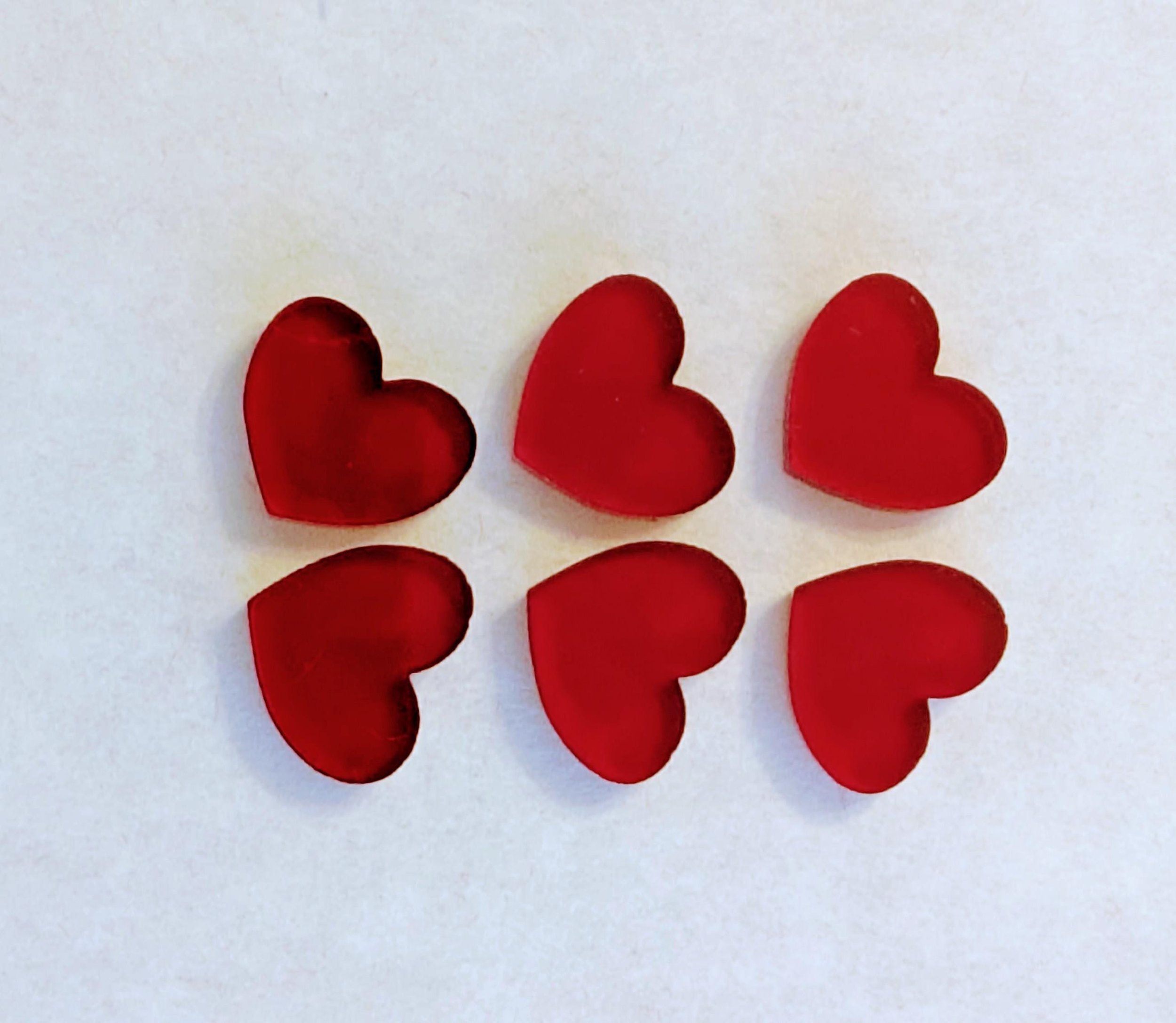 They are made from dark red translucent cast acrylic. Each heart is hand polished (by me).
